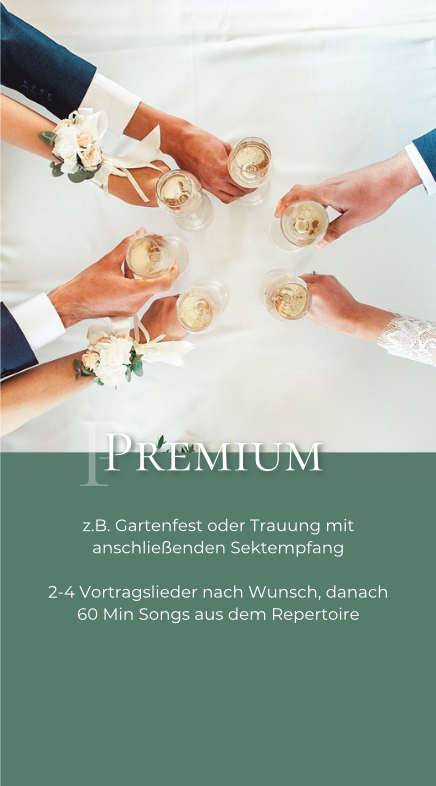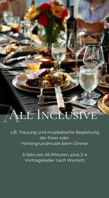 2-4 Vortragslieder nach Wunsch, danach 60 Min Songs aus dem Repertoire
